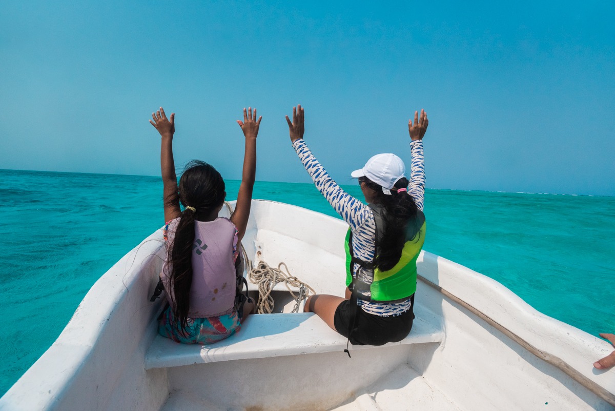Enjoy a morning paddle around the island, which means you are paddling outside the atoll.