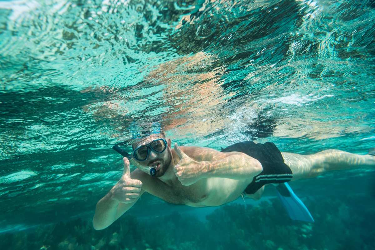 We start the snorkeling orientation with a review of gear and snorkel safety specific to our area. We then break into smaller groups, each with their own guide, and swim to our closest snorkel spot for your first snorkel at Glover’s Reef.
