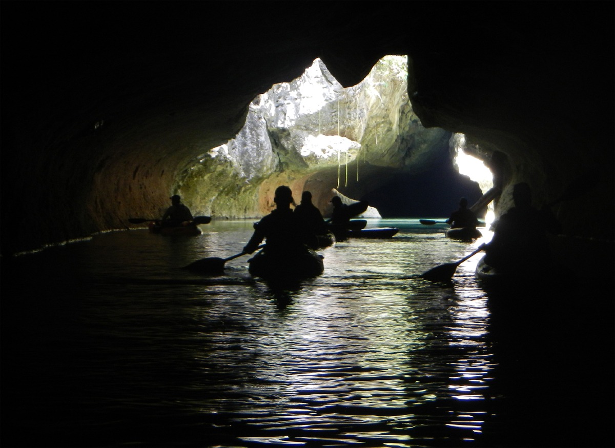 The caves of Belize were sacred to the Mayans, and the Caves Branch River corridor is no exception. Mayan artifacts are found inscribed into the cave formations along the river. We run the Caves Branch as part of our Belize Adventure Week eight day trip. This full-week adventure tour combines kayaking through caves with other activities such as whitewater kayaking, waterfall rappelling, ziplining, hiking to a Mayan ruin, and three days on our private island for sea kayaking, snorkeling, scuba diving, kitesurfing, windsurfing, kayak surfing, Belize permit fishing, kayak fishing, paddleboarding, and board surfing.